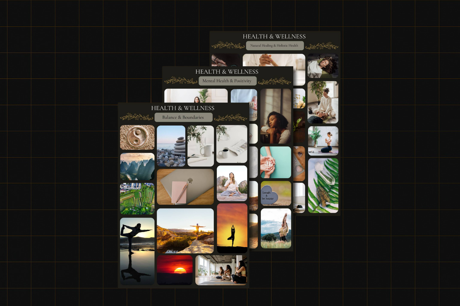 The Health and Wellness Board pack includes a comprehensive dashboard to set goals, track habits, and plan self-care activities in one place.
