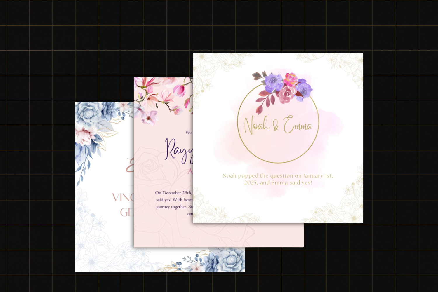 The Engagement Announcement Card pack includes 6 timeless templates—perfect for announcing your special news to friends and family in style.